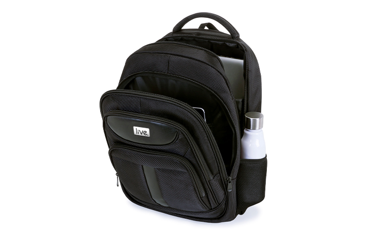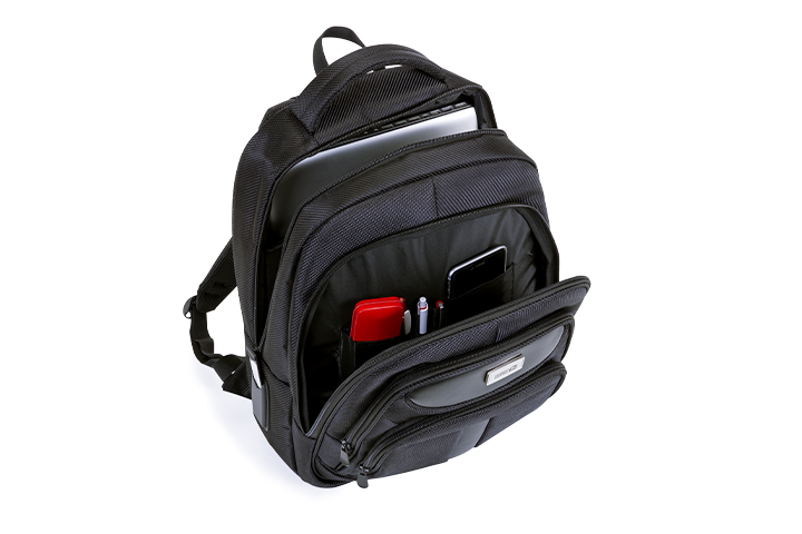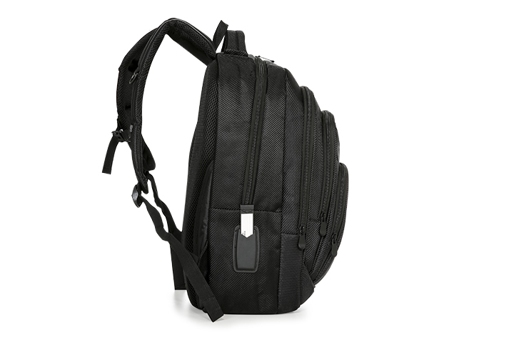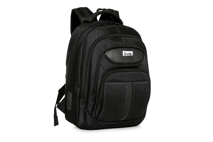 Mochila artisticamente feita com Nylon 1680 Preto (externo), Nylon 70 Resinado Preto (interno), Tela Espumada e Pluma (costas).